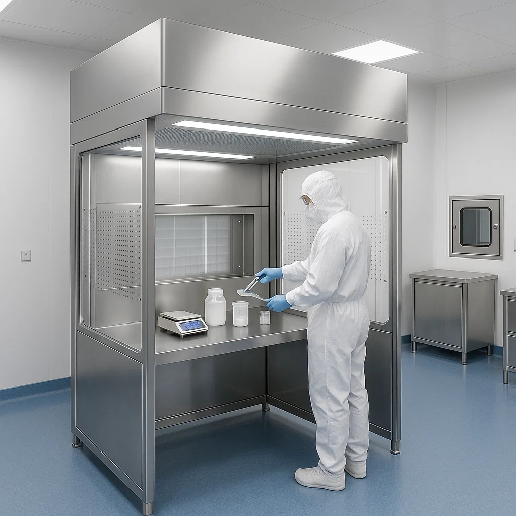 The Dispensing & Sampling Booth ensures safe handling and containment during the dispensing of powders, chemicals, and other substances. This booth is designed for critical operations in cleanroom environments that require strict contamination control.