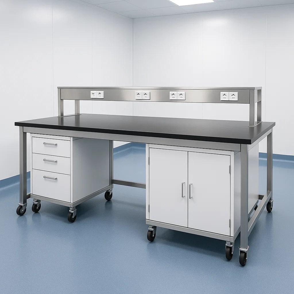 The Modular Lab Table is designed for flexible configurations within cleanrooms. It allows for easy customization to meet specific lab needs, with a focus on providing a stable work surface that supports both cleanroom processes and research activities.